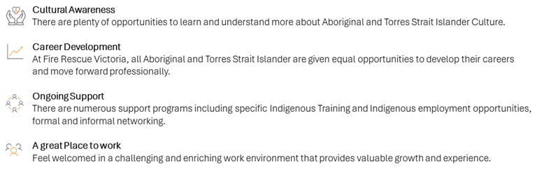Fire Rescue Victoria (FRV) is committed to achieving an inclusive workforce and developing employment opportunities for First Nations people. We recognise the diverse talent of our people will support our growth, performance and success. We strongly encourage applications from Aboriginal and Torres Strait Islanders and people from culturally diverse backgrounds.